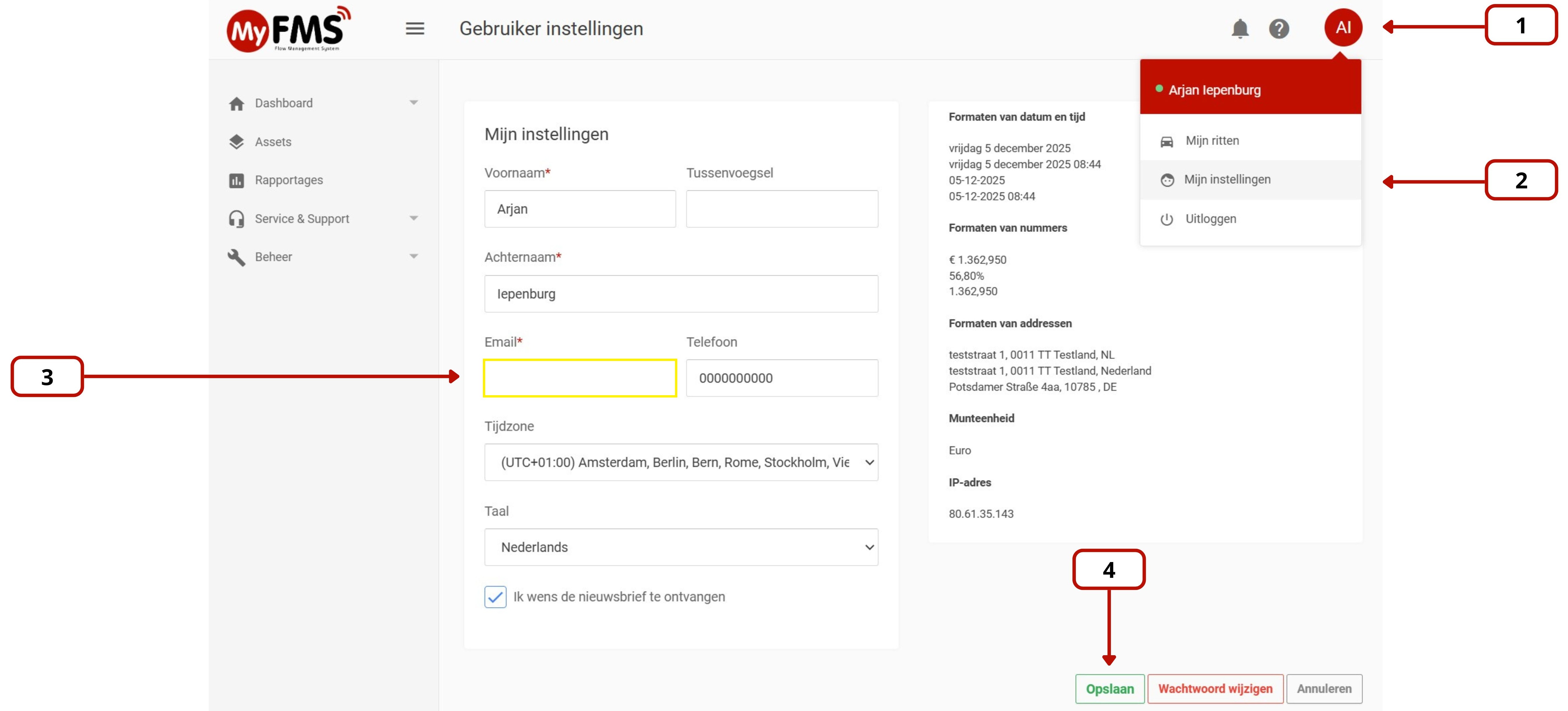 Het e-mailadres kan zowel door de beheerder als door de gebruikers aangepast worden.