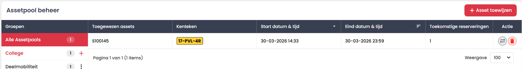 Binnen het Assetpoolbeheer zie je per asset: