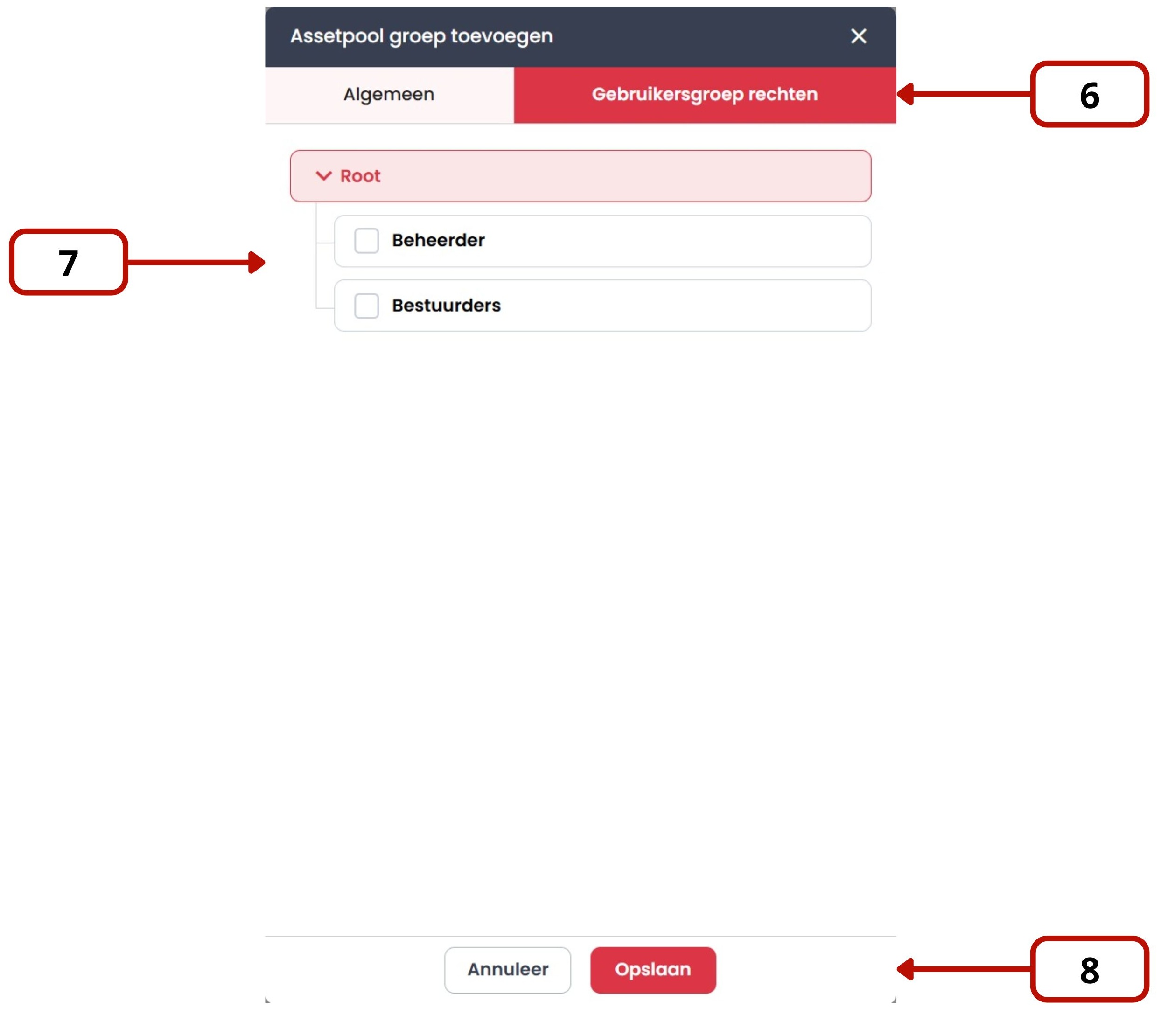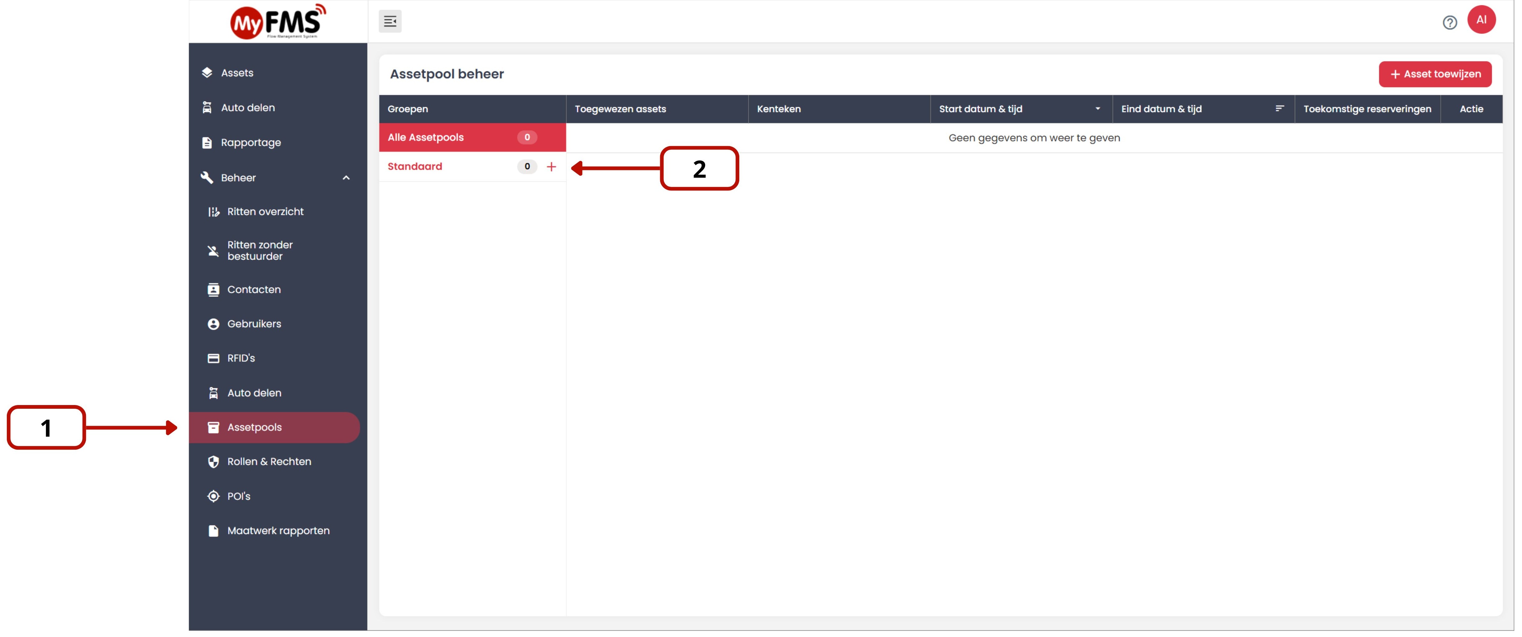 ⚠️ Alleen gebruikers met de rol Beheerder hebben toegang tot Asset Pools.