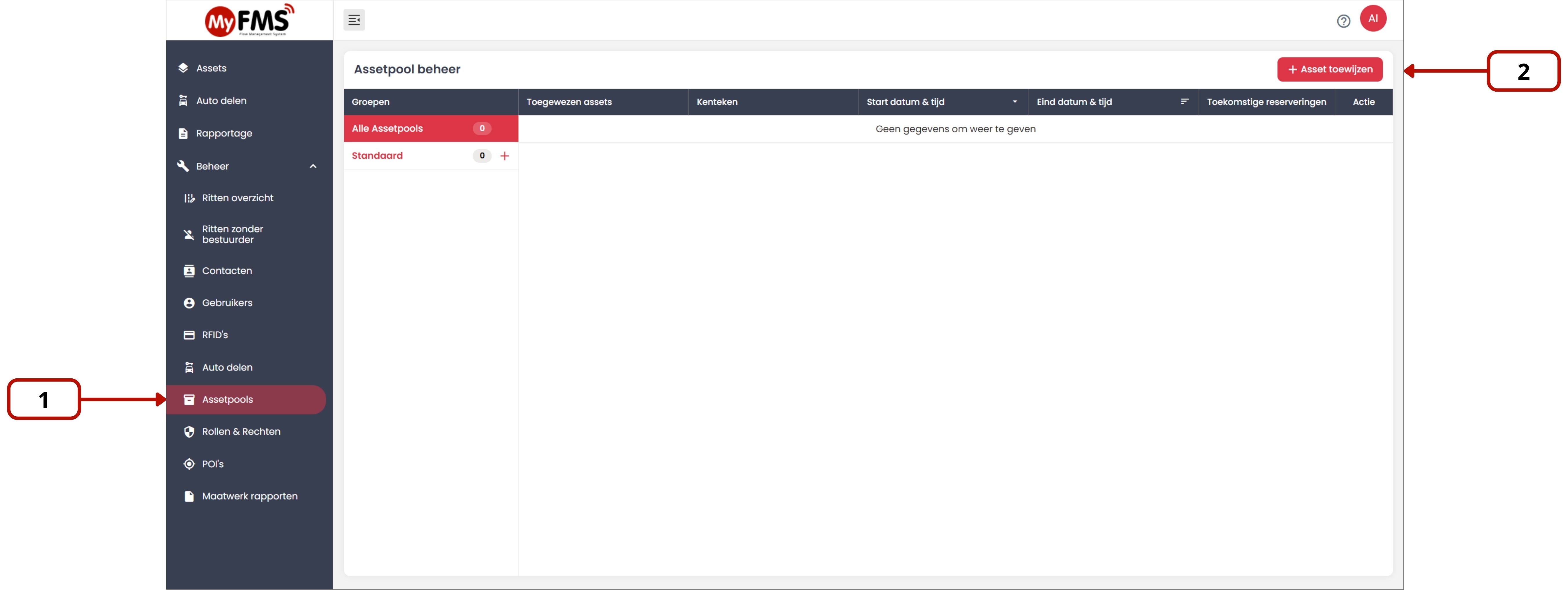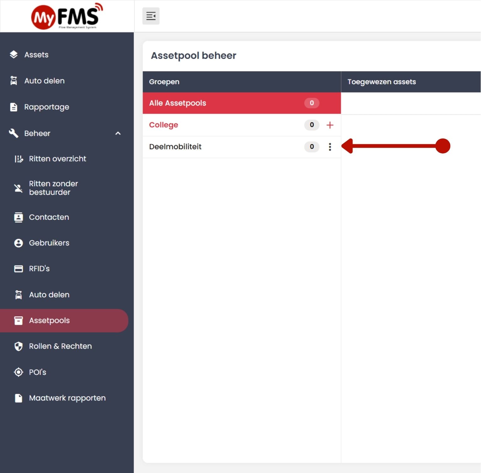 Met Asset Pools in MyFMS maak je voertuigen beschikbaar voor reservering door specifieke gebruikersgroepen.